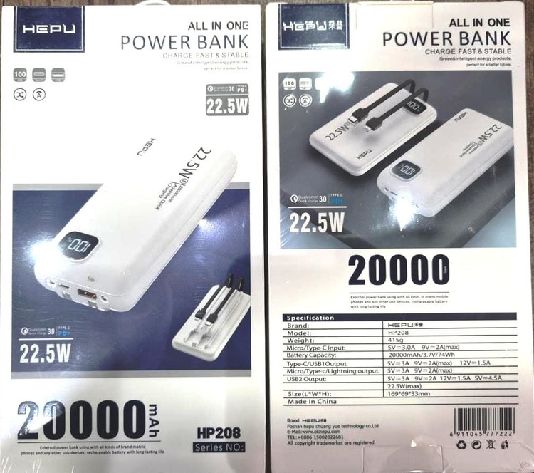 دیدن محصولات مرتبط✅️ظرفیت اسمی : 20000 میلی آمپر ساعت ✅️تعداد پورت خروجی : 2 عدد ✅️توان خروجی : 2.1 / 5 خروجی 5V / USB 12V، 9V/2A، 5V/3A، 4.5V/5A، 4.5A TYPE-C 1.5 برایA USB Type-C Lightining ✅️کابل متصل : دارد ✅️وزن : 415 گرم ✅️ابعاد : 169 در 69 در 33 میلی متر ✅️جنس بدنه : پلاستیک فشرده ✅️چراغ قوه : دارد ✅️نمایشگر درصد شارژ : دارد ✅️کلاس وزنی : سنگین بیشتر از 400 گرم ✅️ظرفیت اسمی: 20000 ✅️تعداد درگاه خروجی : دو عدد ✅️قابلیت های ویژه: SuperCharge فناوری ✅️شدت جریان خروجی : 5.0 آمپر مخصوص تبلت و موبایل 12 آمپر ✅️ولتاژ خروجی: 5.0 ولت ✅️ولتاژ ورودی :5 فروش حضوری وغیر حضوری.